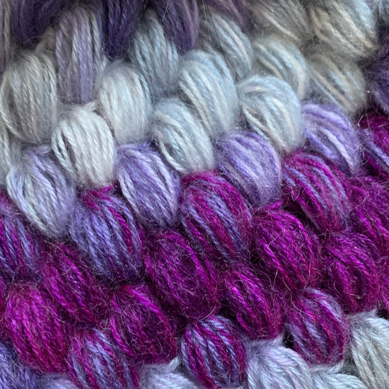 Difficulty: Advanced beginner -- there are photos that explain how to create the puff stitches
