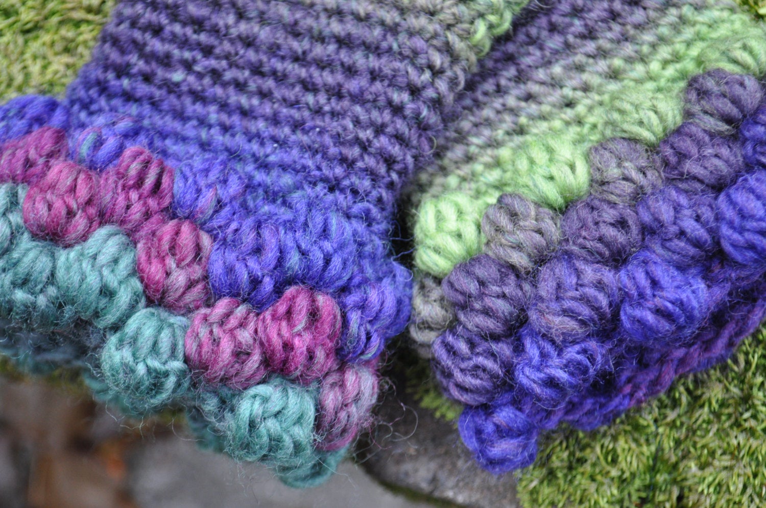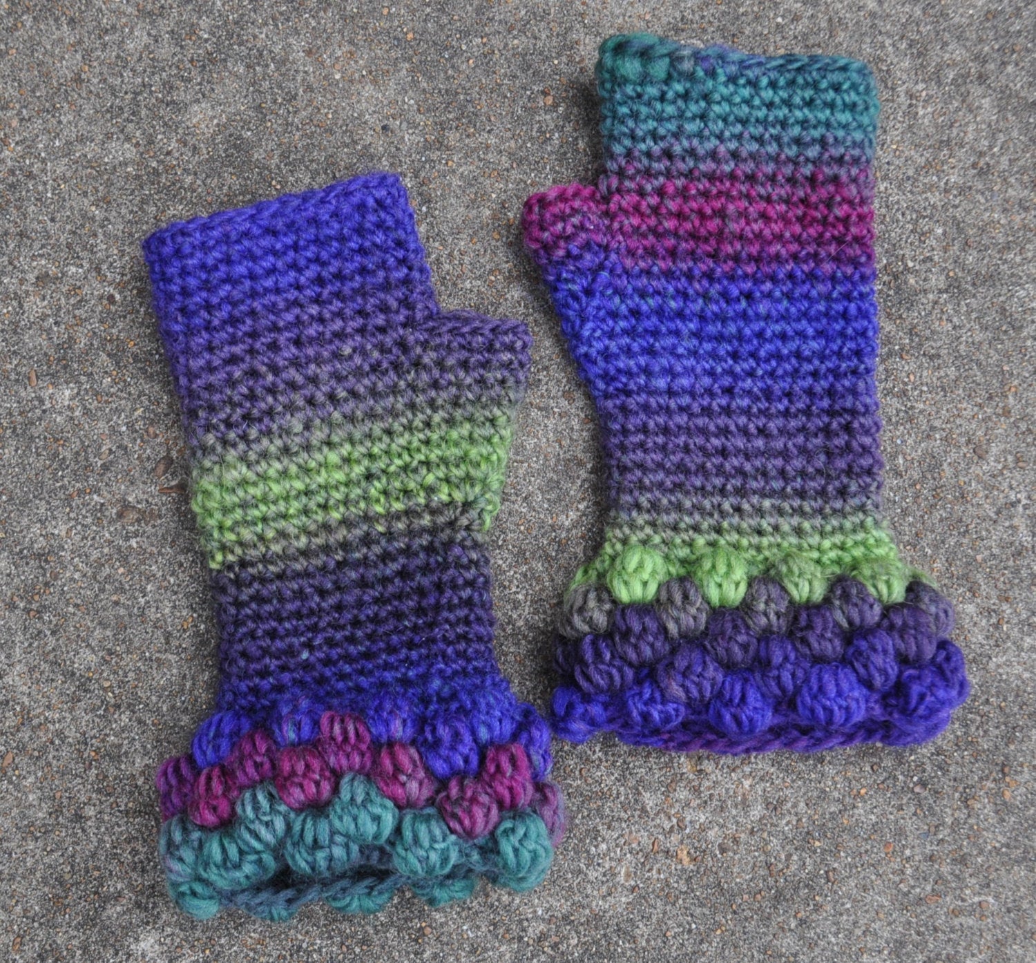Simple gloves with a funky bobbly trim ~ perfect for keeping your hands snuggly through the fall and winter!