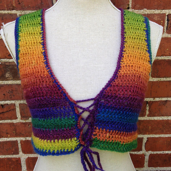 The Luna Mandala Vest is a super cute, versatile vest that looks great worn alone over a bandeau for a cute summery look or layered through the colder months. The vest features a large floral mandala at the back, cropped fit, crab stitch edging, and lace up front. It looks great laced up or open in the front. This vest works up very quickly and can easily be completed in an afternoon of stitching.