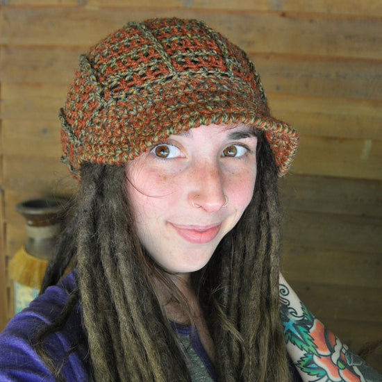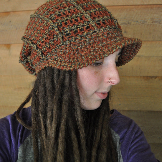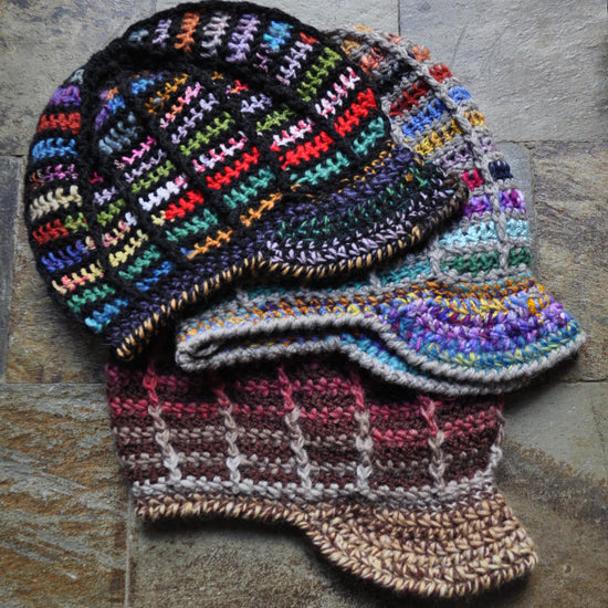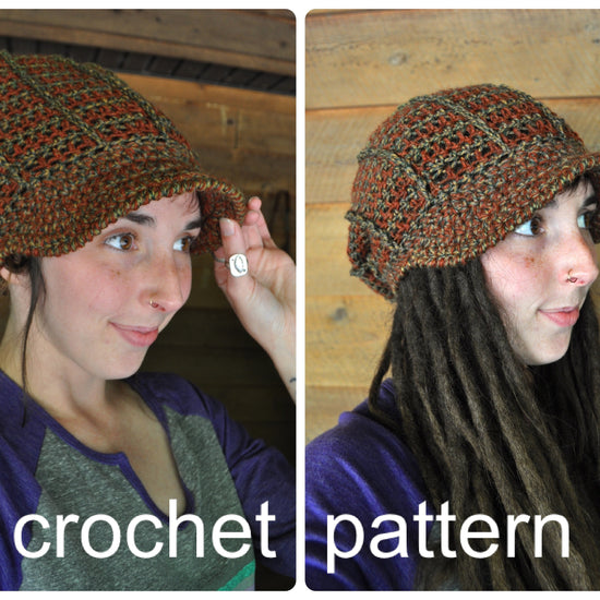 The Ridgeline Peaked Slouchy Hat is a quick project that is fun to make and easy to wear. The hat features textured ribbing, a slouchy fit, and a soft worked brim with crab stitch edging. The brim is crocheted tightly using two strands of yarn, so it can easily stand up on it's own (no more flopping hat brims!) The hat is soft and stretchy - perfect for dreadlocks, long hair, or anyone looking for a funky winter hat!