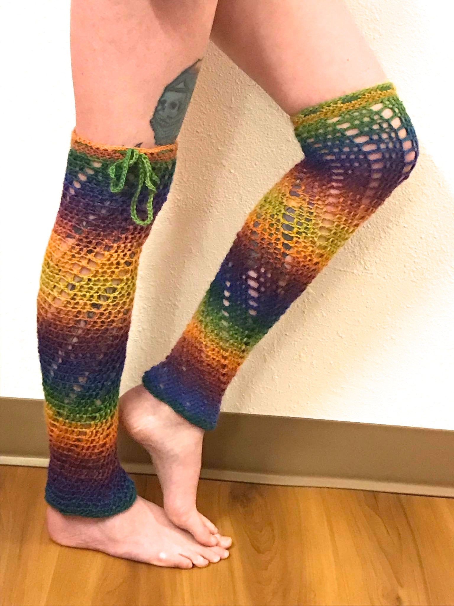 These leg warmers can be made using any weight yarn - you will need more or less yardage depending on the weight used.