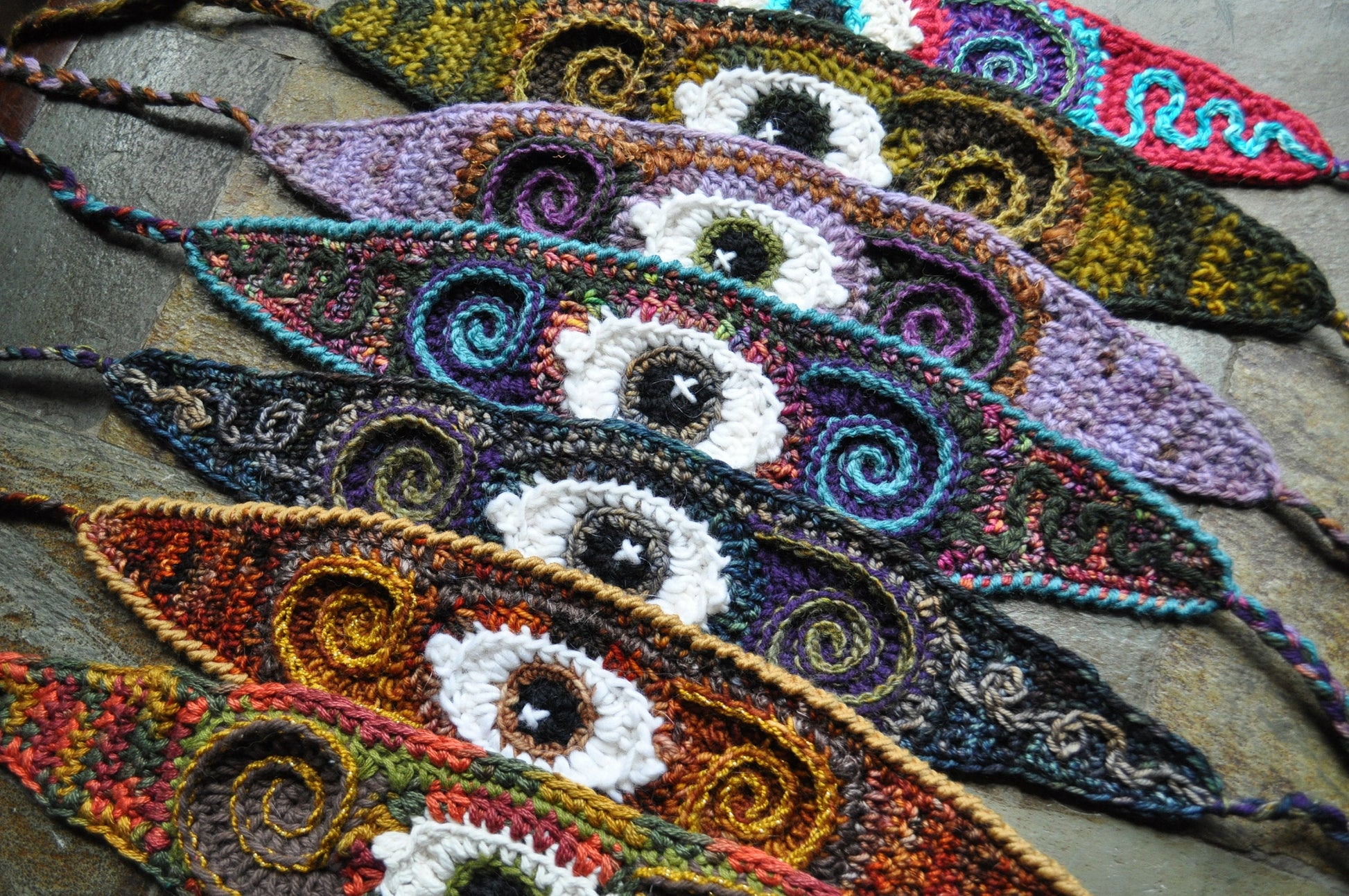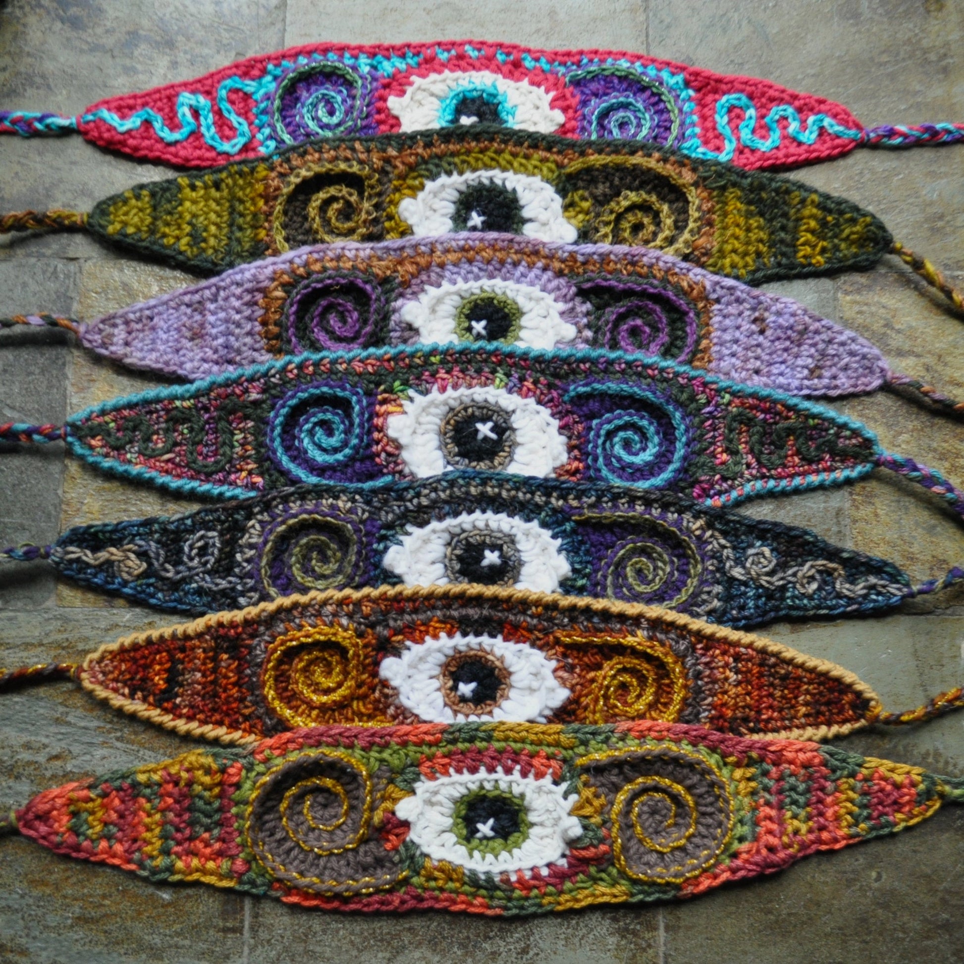 I have finally written a pattern for my popular third eye headband design!! These headbands have been a staple in my shop since 2012. They're really fun to make and are a great way to start exploring the realm of freeform crochet. This project is a really unique design and is a great stash buster!