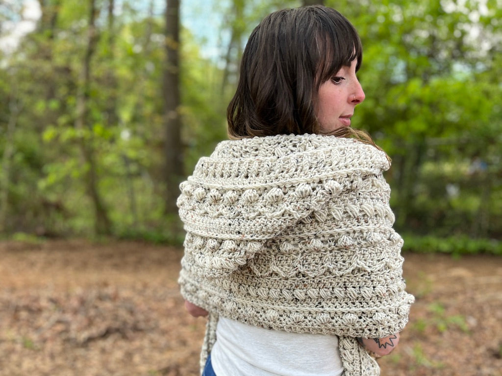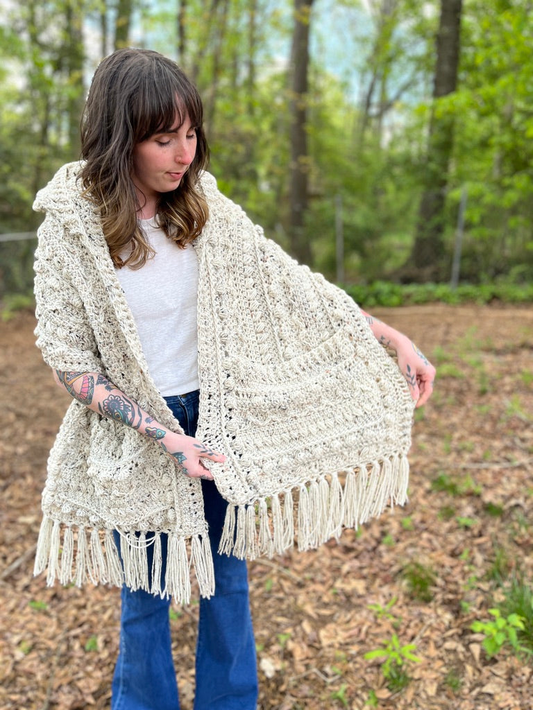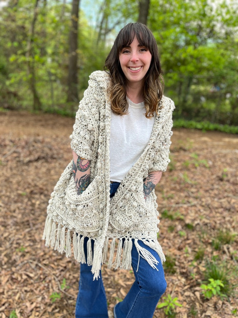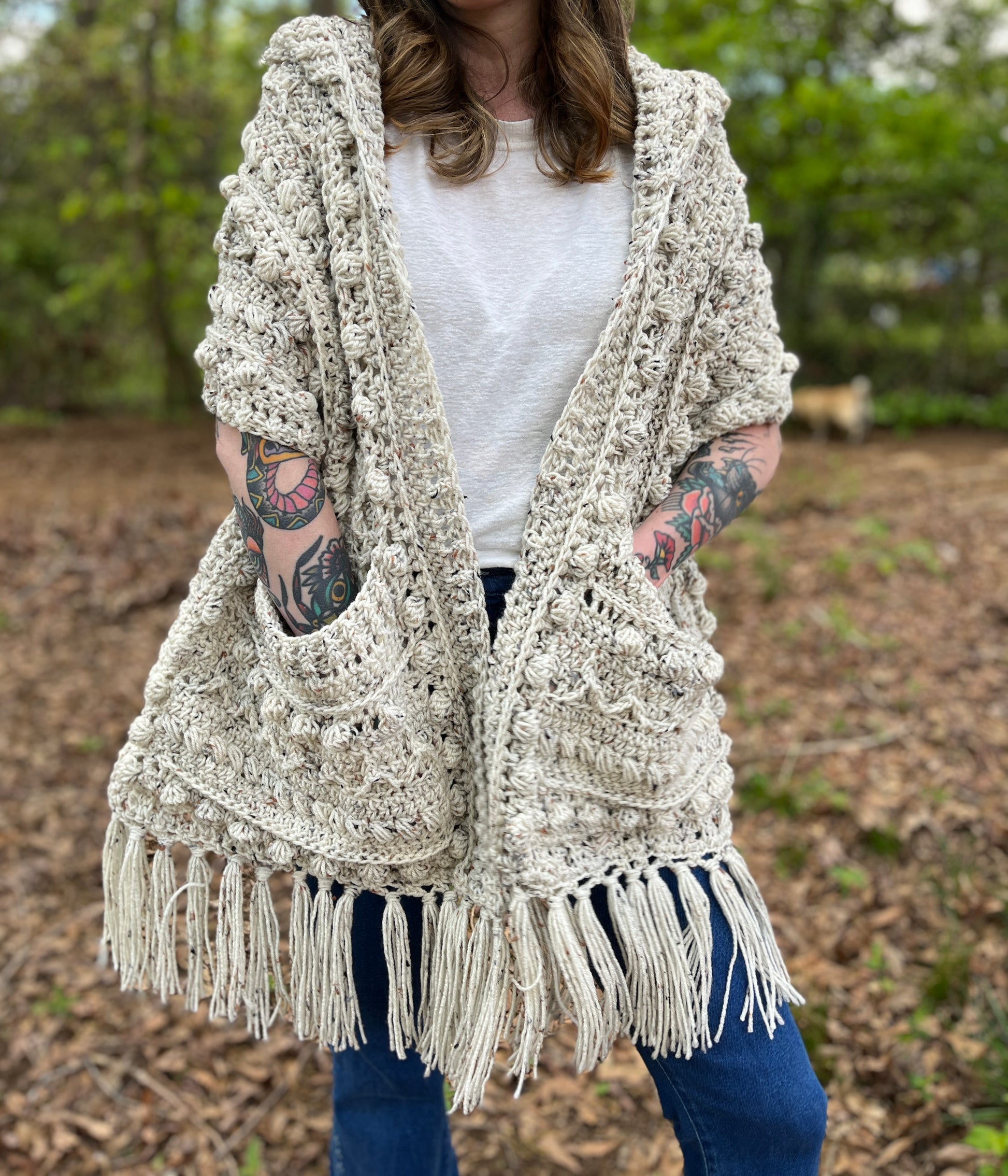 Wrap yourself up in warmth & texture with the Fable Pocket Shawl, a cozy and functional piece perfect for chilly weather. It features loads of squishy, textured stitches that are super fun to wear.