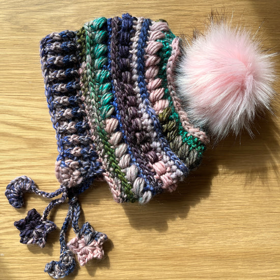 The Mashup Bonnet features a few different kinds of squishy stitches for all the texture!