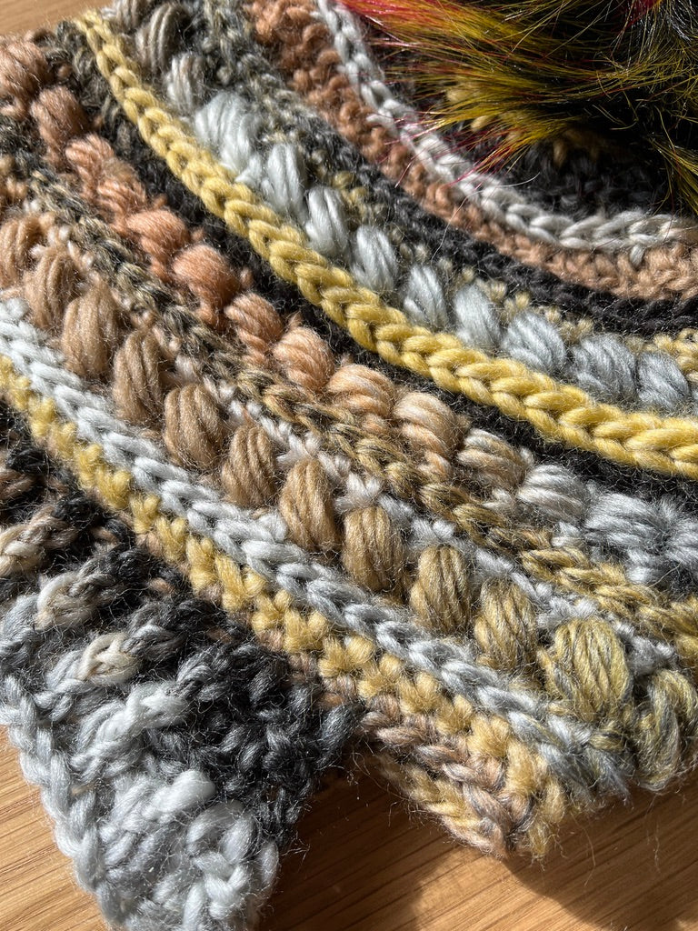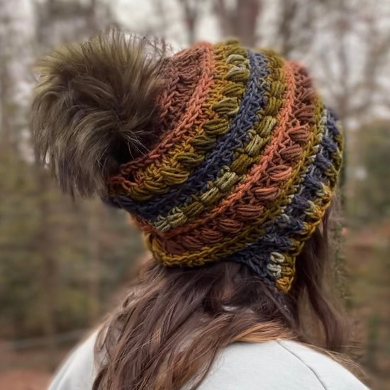 Materials: ~175 yards worsted weight yarn, 6 mm hook, pompom (optional)