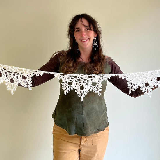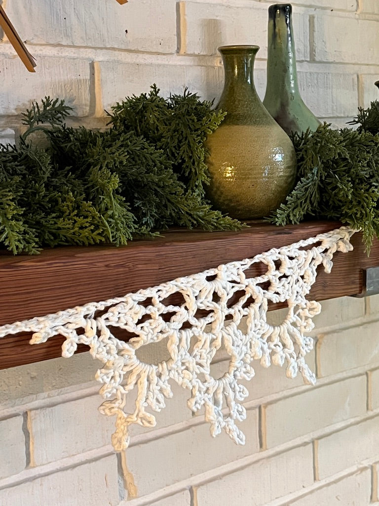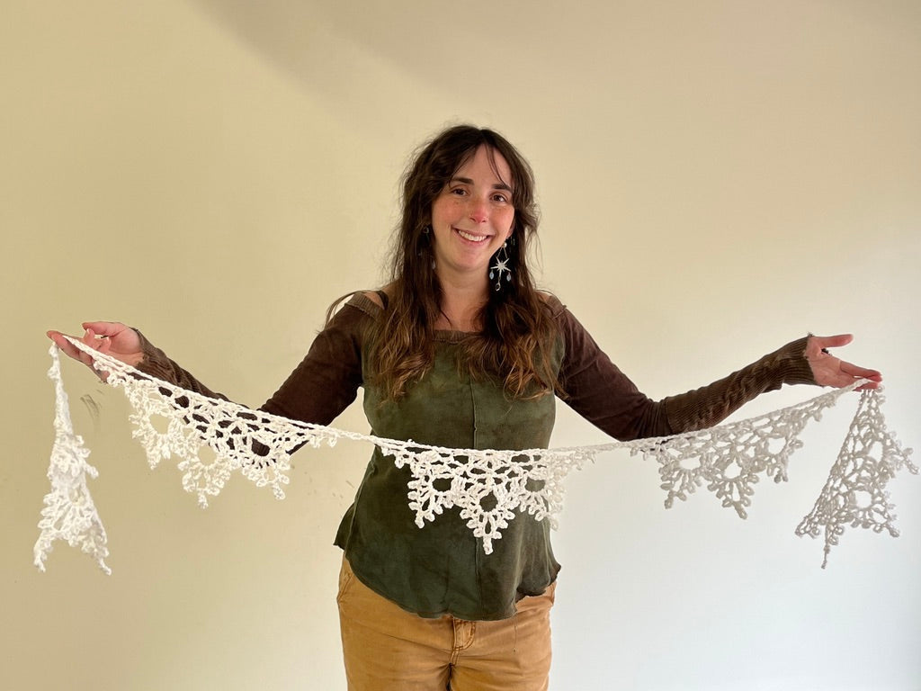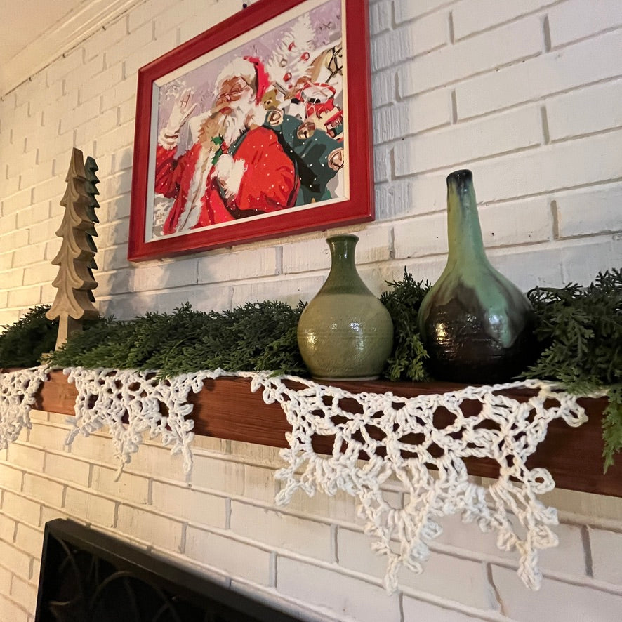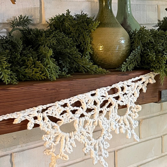 Add some holiday cheer to your home with the Snowflake Garland! It is a quick project that makes a big impact with minimal yarn. The garland can be made in any length and can be used indoors or outdoors. It's something that can be used year after year and is easily packed away during the warm months. Hang it above the fireplace, above a doorway, along your stairway banister, or even on your office desk.