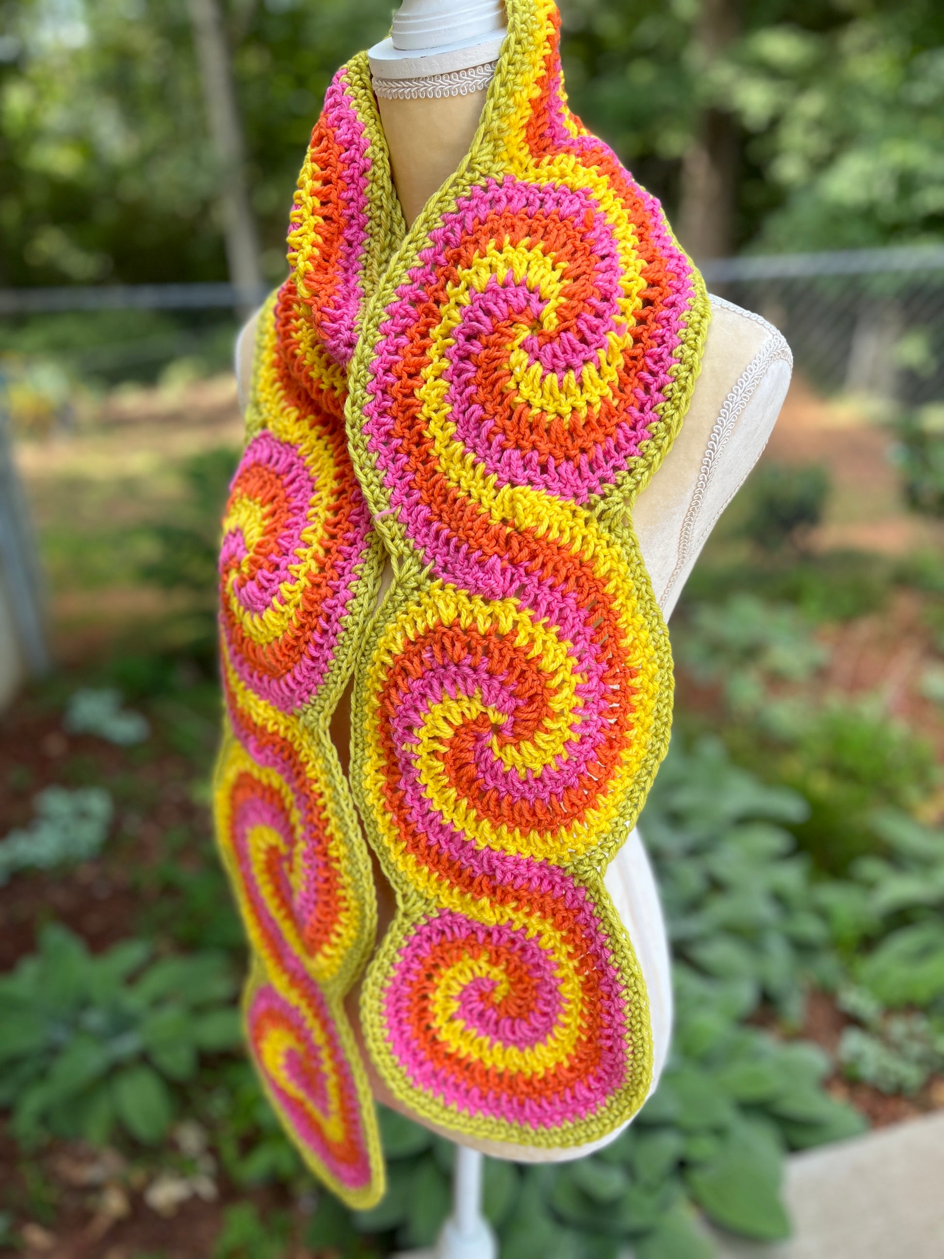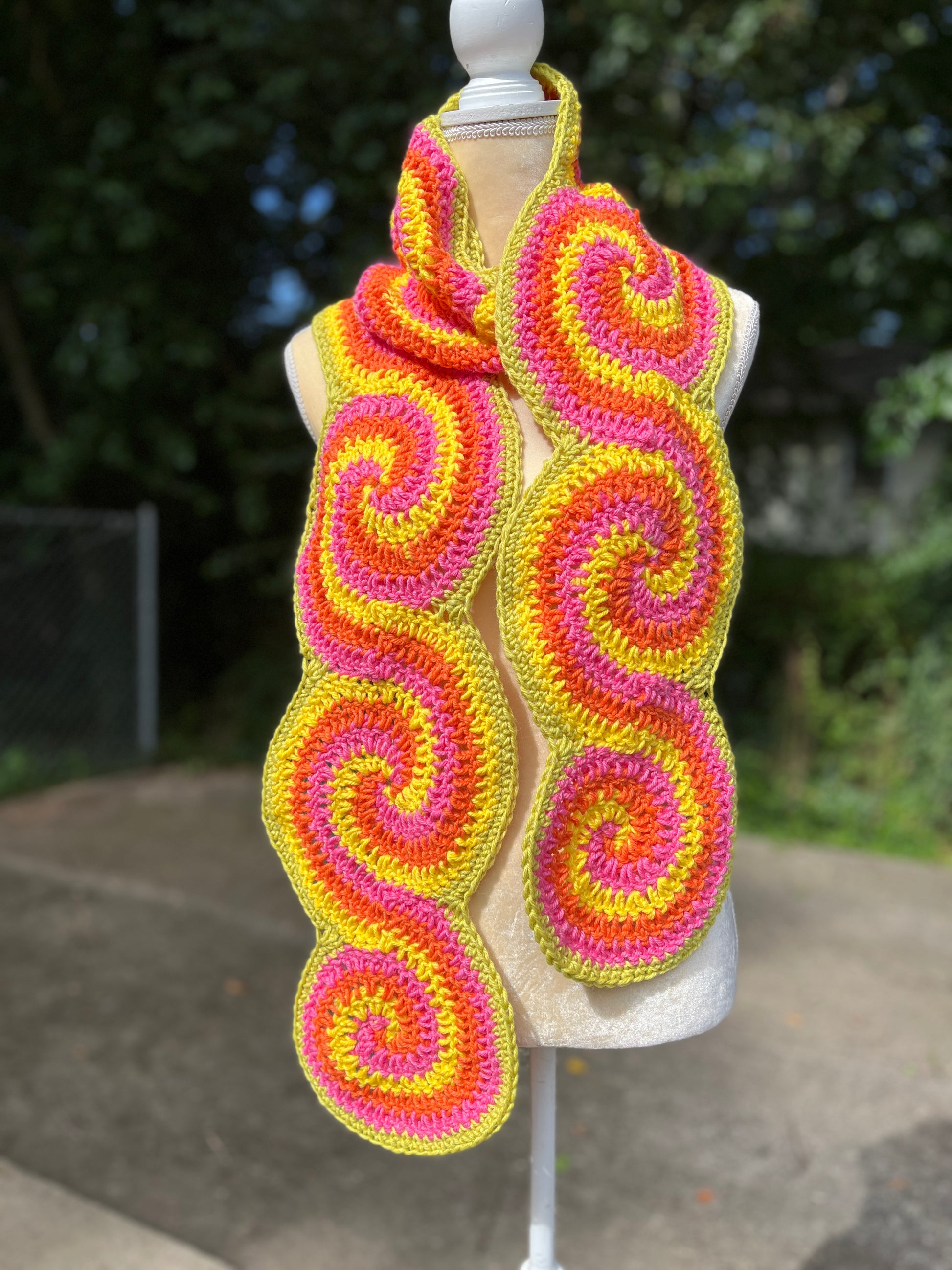 This scarf features a continuous spiral pattern that is so fun and unique!