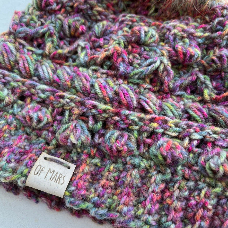 The pompom attaches using a snap, so it can easily be removed for washing or to switch up the look.